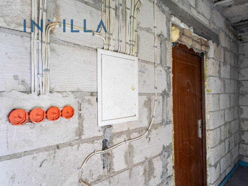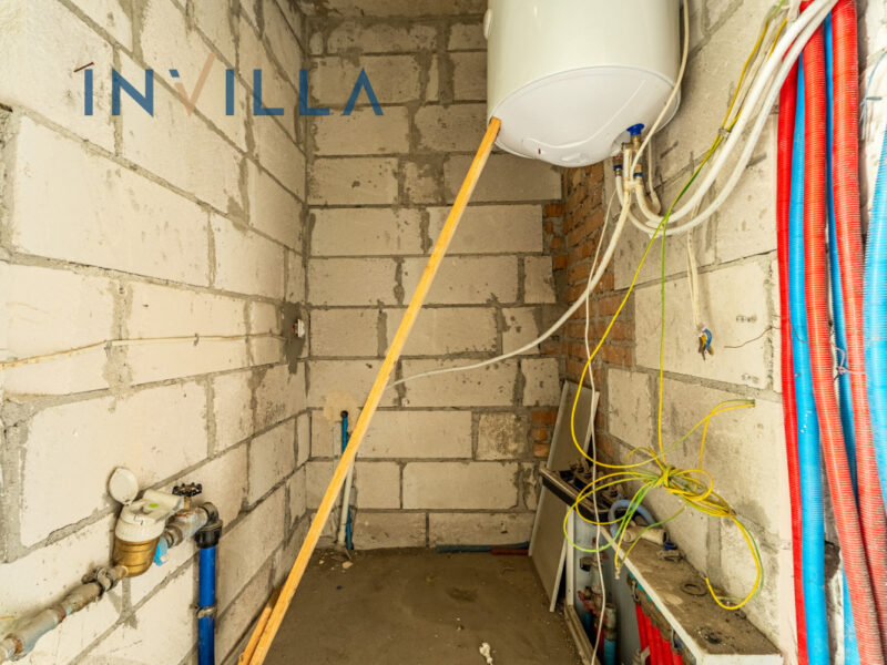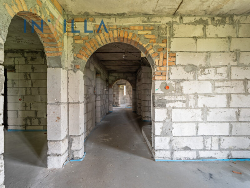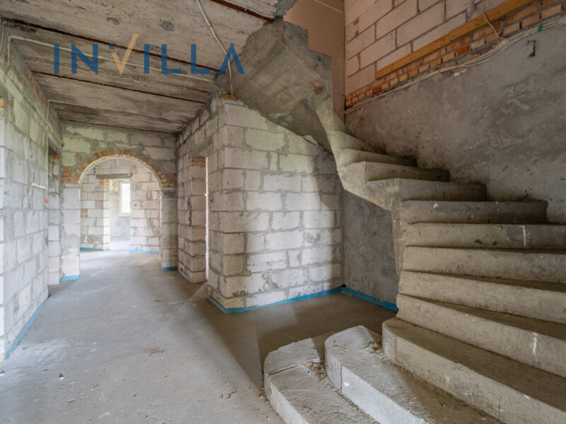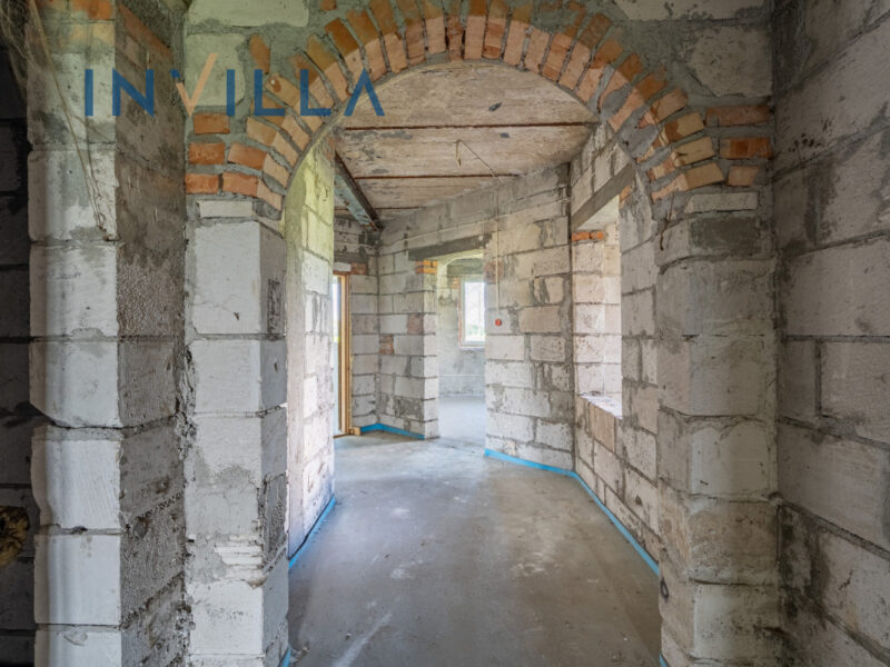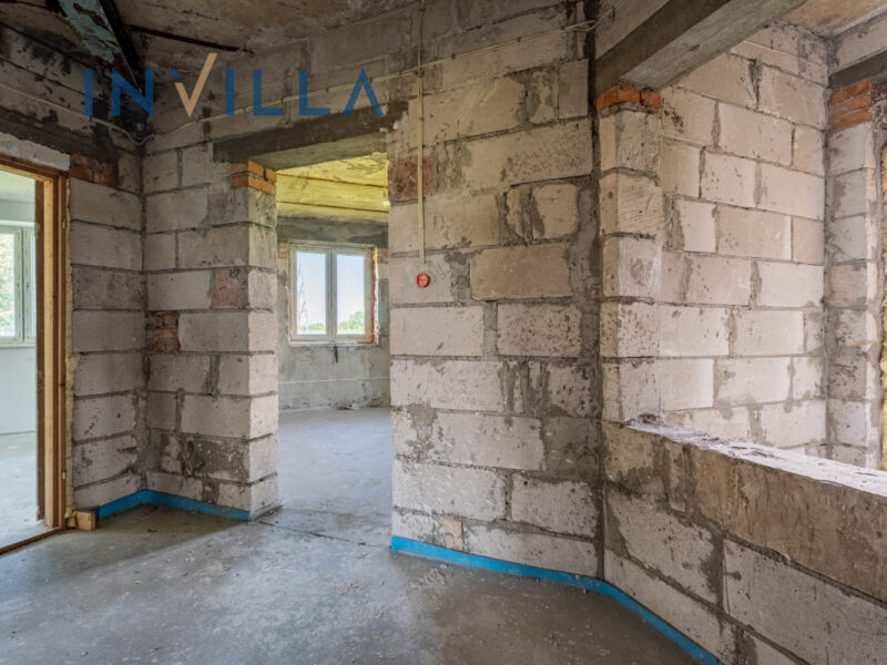 Parter w stanie deweloperskim – gotowy do wykończenia. Piętro częściowo wykończone – położone tynki, instalacje, w dwóch pokojach podłogi.