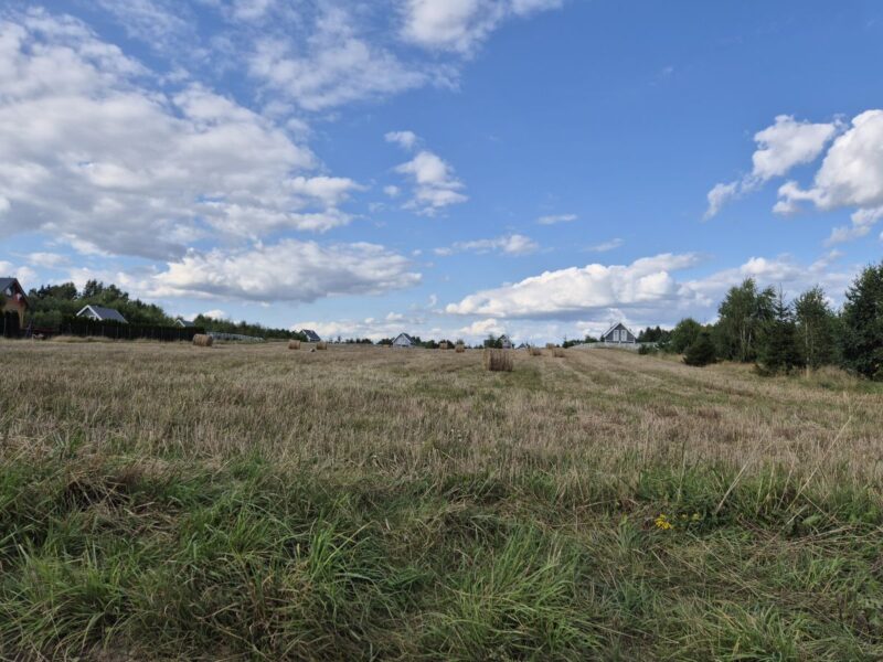 Trójkątna działka, o powierzchni 1400 metrów kwadratowych, z wydanymi Pozwoleniem na Budowę na budowę domu. Położona na skraju zabudowy rekreacyjnej, pozwalająca na posadowienia domu tak aby główna ekspozycja domu skupiała się na słonecznym południu. Prąd w drodze, wg projektu wymagana własna studnia (przy czym możliwe, że wystarczy woda doprowadzona w ramach lokalnego wodociągu) i szambo, ogrzewanie poprzez pompę ciepła. Wizualizacje załączone w galerii.