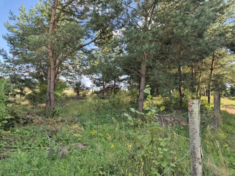 Trójkątna działka, o powierzchni 1400 metrów kwadratowych, z wydanymi Pozwoleniem na Budowę na budowę domu. Położona na skraju zabudowy rekreacyjnej, pozwalająca na posadowienia domu tak aby główna ekspozycja domu skupiała się na słonecznym południu. Prąd w drodze, wg projektu wymagana własna studnia (przy czym możliwe, że wystarczy woda doprowadzona w ramach lokalnego wodociągu) i szambo, ogrzewanie poprzez pompę ciepła. Wizualizacje załączone w galerii.