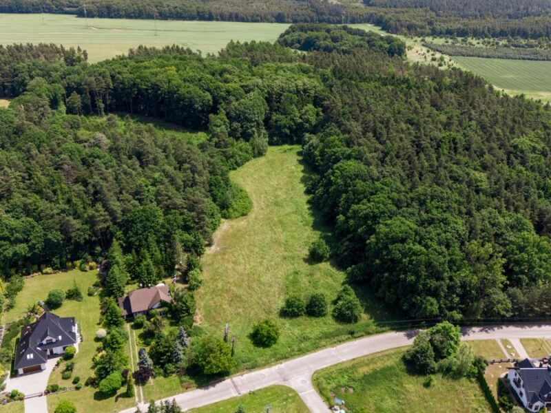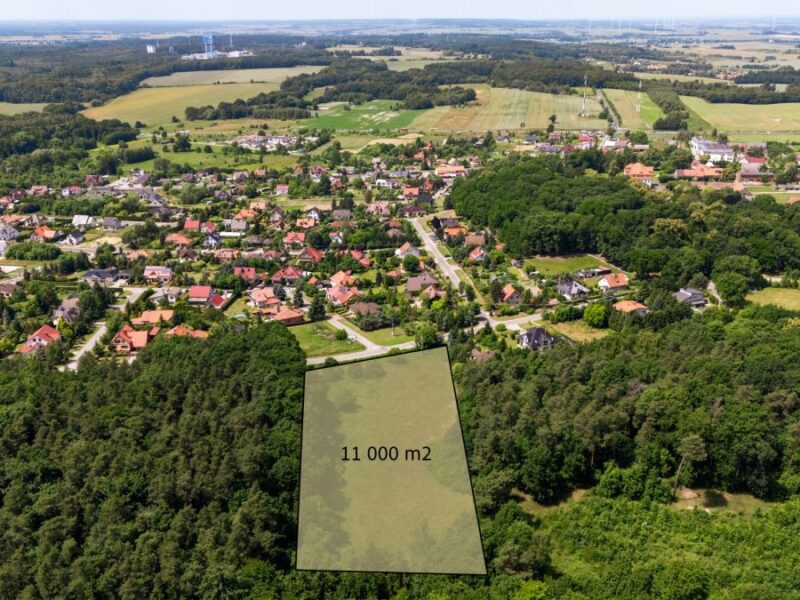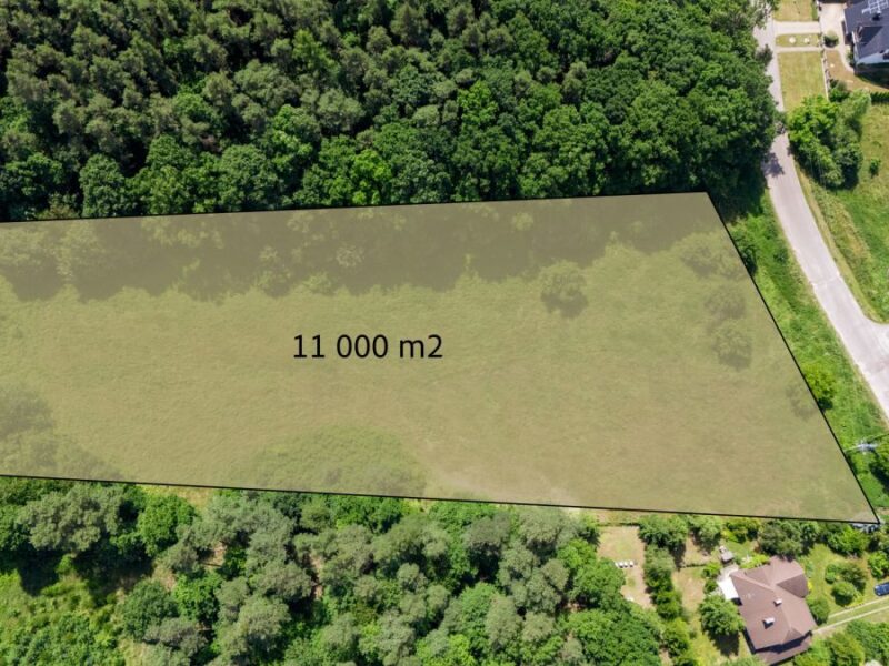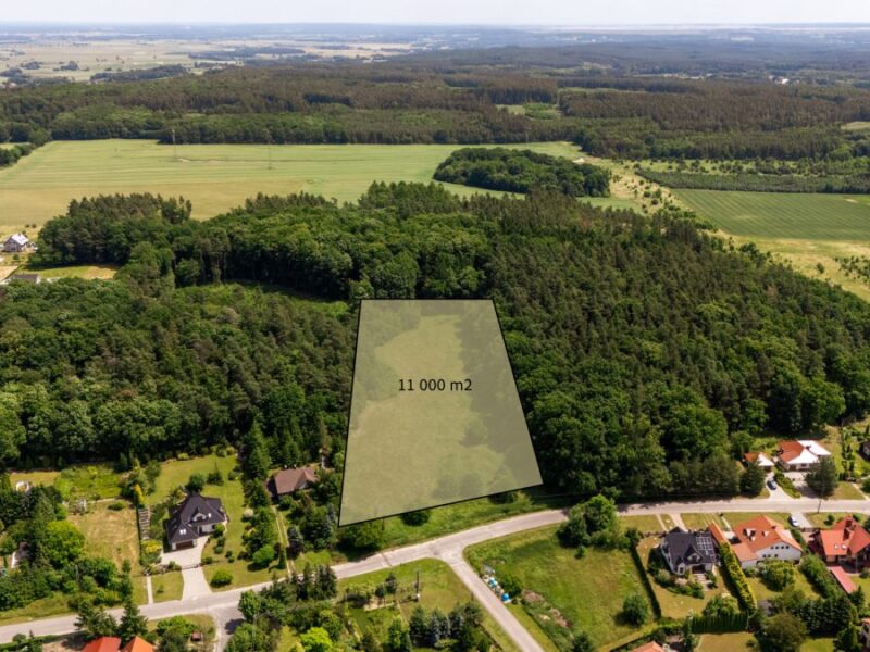 Powierzchnia działki wynosi 11 000 m². Znajduje się na lekko nachylonym terenie, co pozwala na ciekawe rozwiązania architektoniczne oraz ogród z widokiem na okoliczną zieleń. Otoczenie lasu zapewnia piękne naturalne widoki. Dostęp do mediów: prąd, woda, gaz, kanalizacja oraz światłowód internetowy znajduje się w ulicy Parkowej tuż przy działce, co znacznie ułatwia realizację inwestycji. Działka oferuje szerokie możliwości aranżacyjne — od budowy przestronnego domu jednorodzinnego po dodatkowe zabudowania gospodarcze lub rekreacyjne.