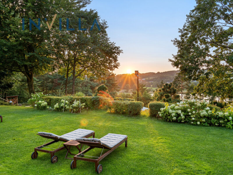 Działka o powierzchni 1,3 ha została starannie zagospodarowana z myślą o wypoczynku. Roślinność, w tym nasadzenia sprowadzane z Holandii i Niemiec, gwarantuje estetyczny wygląd przez cały rok. Dodatkowym atutem jest podgrzewany basen, który pozwala na relaks nawet w chłodniejsze dni. To miejsce pełne spokoju, gdzie można delektować się naturą, wsłuchując się w śpiew ptaków – idealne do jogi czy medytacji.