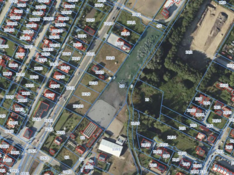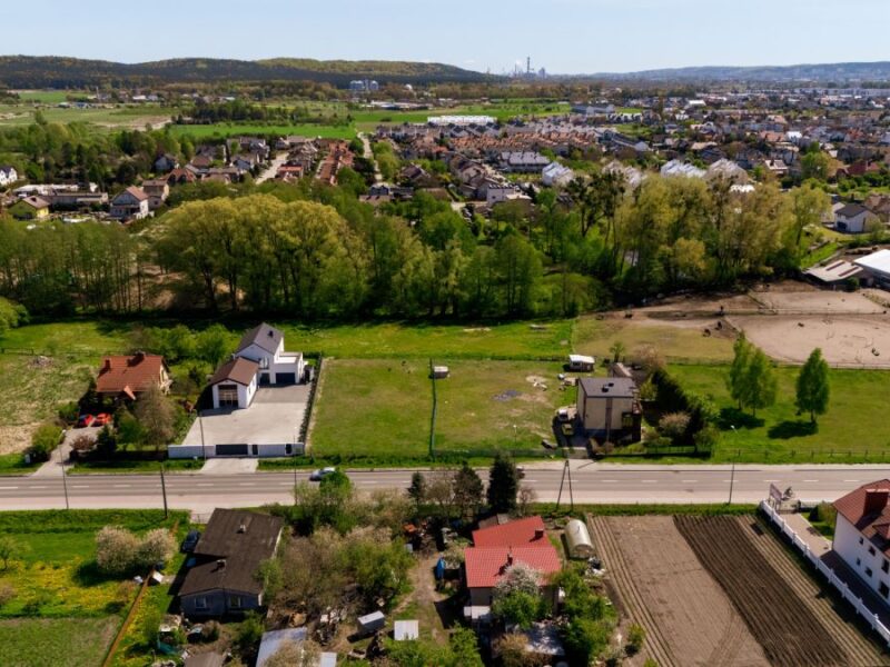 Działka budowlana, płaska, o powierzchni 7787 m². Dojazd zapewniony od drogi lokalnej 03.KDL oraz ogólnodostępnego ciągu pieszo-jezdnego B02.KR-KP. Teren objęty Miejscowym Planem Zagospodarowania Przestrzennego (MPZP), oznaczony jako B1.MN-U – przeznaczony pod zabudowę jednorodzinną z dopuszczeniem usług.