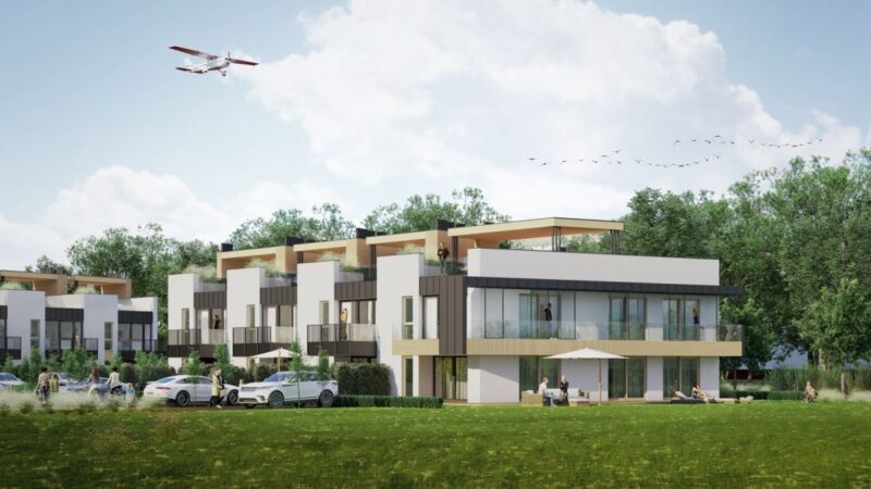 Na inwestycję składa się 8 budynków dwulokalowych z oddzielnymi wejściami do apartamentów.