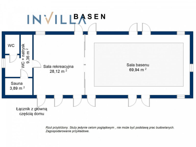 – basen o wymiarach 11,5 m x 5,30 m o głębokości 140 cm – 220 cm,