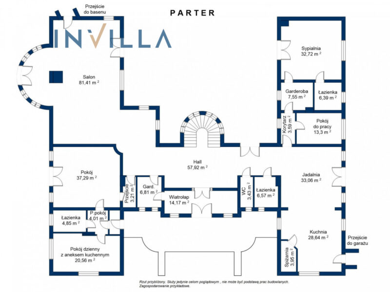 – imponujące główne wejście – przestronny hall 57 m2, łączący wszystkie 3 strefy,