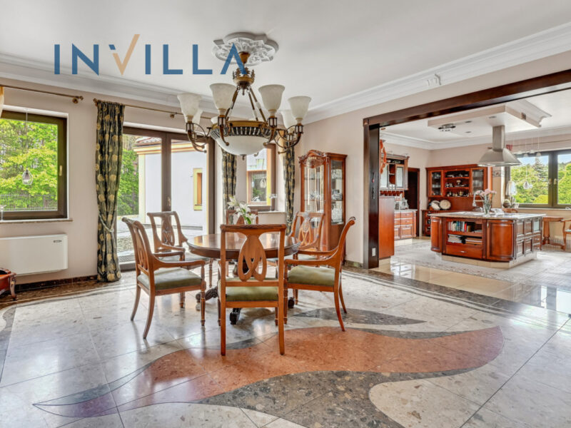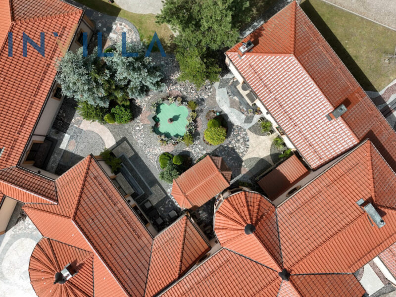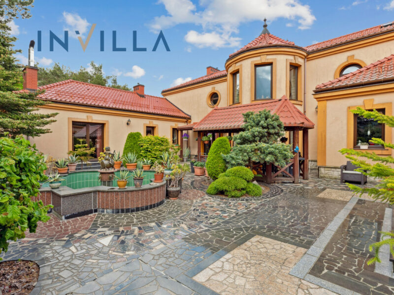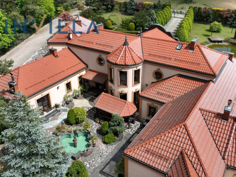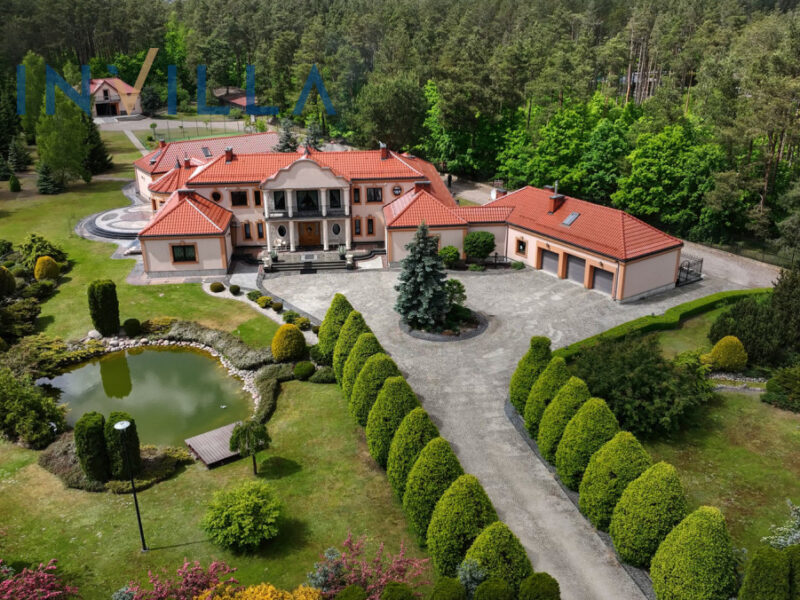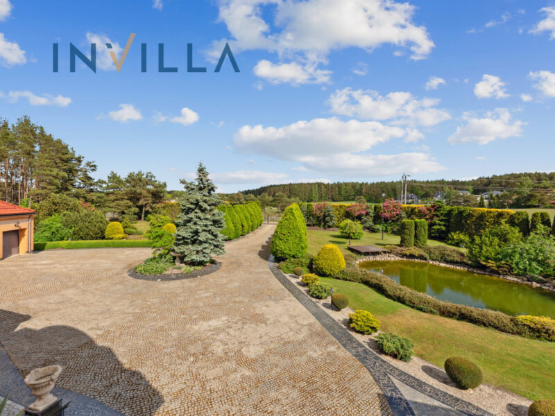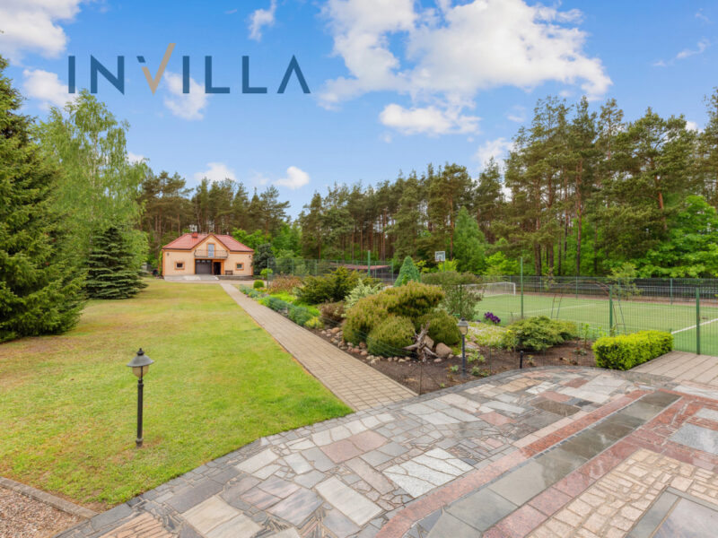 Całość położona na działce o imponującej powierzchni 27 000 m2. Dom jest otoczony pięknym i zadbanym ogrodem z wieloma ozdobnymi nasadzeniami, oczkiem wodnym z żółwiami oraz rybami, wieloma ścieżkami do spacerowania. Na terenie posesji oprócz głównego budynku znajduję się również domek gościnny o powierzchni ok 100 m2.