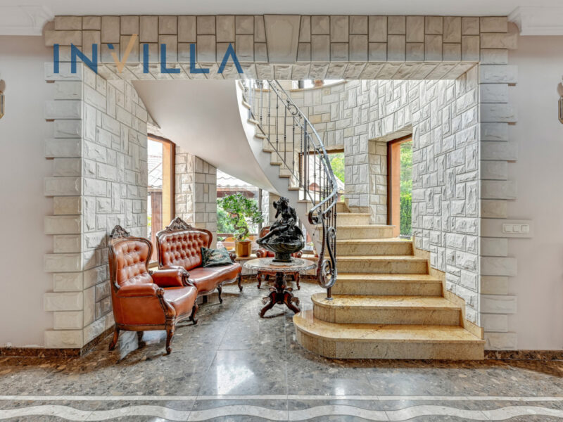 Przestronne wnętrza, praktyczne i ergonomiczne rozwiązania, unikatowa bryła budynku – 800 m2 powierzchni mieszkalnej podzielonej na 3 strefy – strefa główna, strefa rekreacyjna, strefa techniczno – gospodarcza.