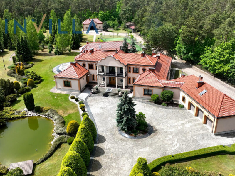 Energooszczędna posiadłość z basenem, kortem tenisowym oraz prywatnym lasem położona na działce o powierzchni 27 000 m2.