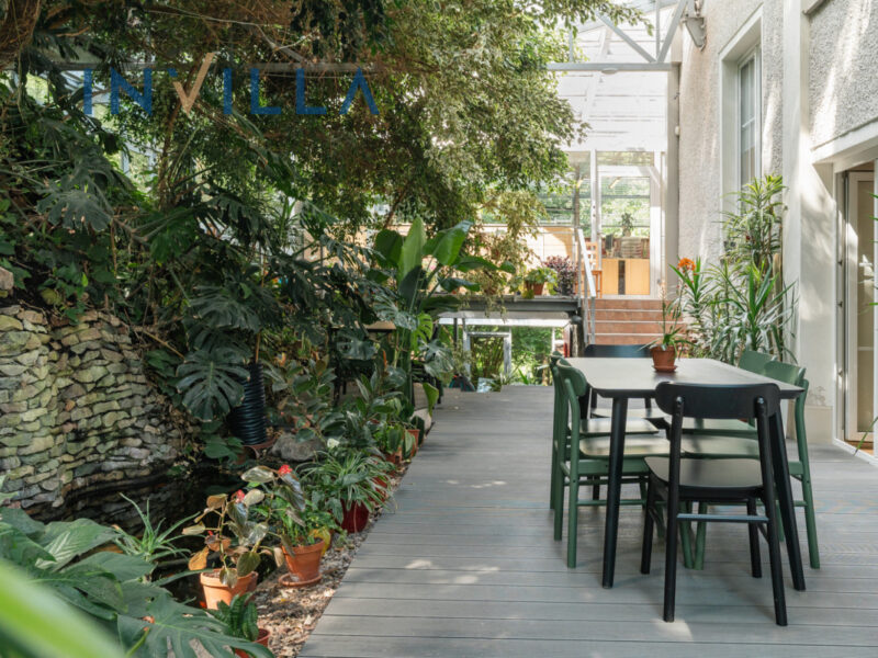 Wyjątkowym elementem tej nieruchomości jest przestronny ogród zimowy ze świetnie zachowaną roślinnością i oczkiem wodnym. Dzięki dużym przeszkleniom, ogród ten jest doskonale doświetlony, tworząc niepowtarzalną, oryginalną przestrzeń idealną do relaksu przez cały rok. To miejsce może stać się sercem domu, idealnym do spędzania czasu z rodziną lub przyjmowania gości, ciesząc się zielenią niezależnie od pory roku.