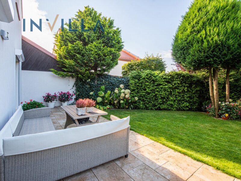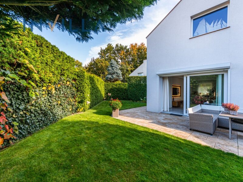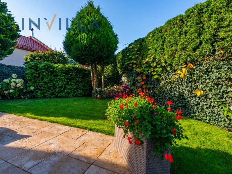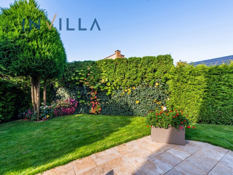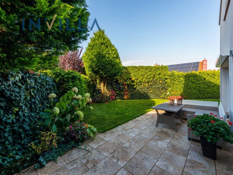 Niezwykle elegancki trzykondygnacyjny dom jednorodzinny położony jest na 361m2 działce. Dodatkiem do strefy mieszkalnej jest taras i ogród z niezwykle zadbaną i wypielęgnowaną roślinnością,  zapewniający jednocześnie doznania estetyczne jak również dodający intymności temu miejscu. Garaż osobny – znajdujący się przy budynku z automatyczną bramą, z dodatkowym przejściem od strony ogrodu. Przed domem na podjeździe dodatkowe miejsca postojowe.