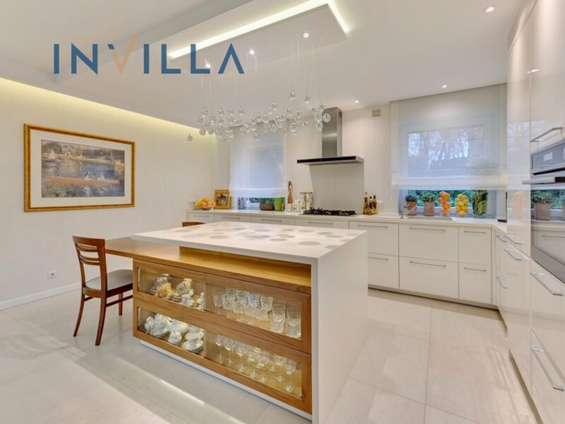 • kuchnia z wyspą wyposażona w wysokiej jakości sprzęt AGD z przytulnym zakątkiem śniadaniowym, w którym nawet duża rodzina może wygodnie spożywać posiłki,