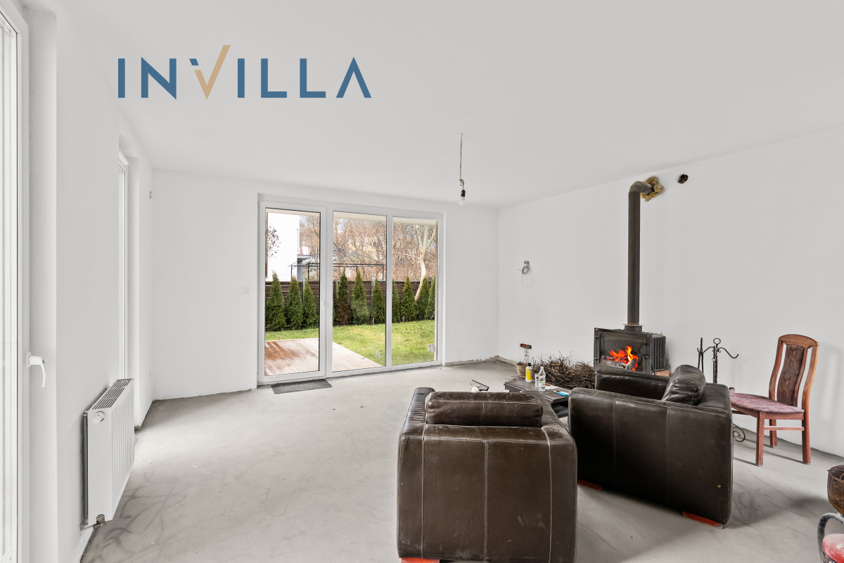 – przestronny pokój rekreacyjny (28 m²) z kominkiem, dużymi przeszkleniami, czterema wyjściami na ogród,