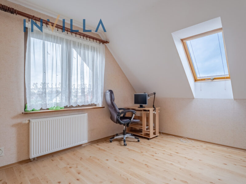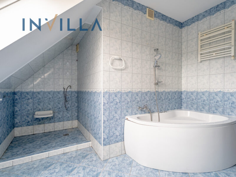Z trzech pokoi wyjście na dwa przestronne balkony. Poddasze to obecnie open space do własnej aranżacji. Standard wykończenia – schody – drewniane, podłoga – deska, panele, terakota. Dom jest ciepły, słoneczny, jasny i idealnie doświetlony (południowo – zachodnia ekspozycja). Ogrzewanie gazowe, kominkowe (rozprowadzenie).