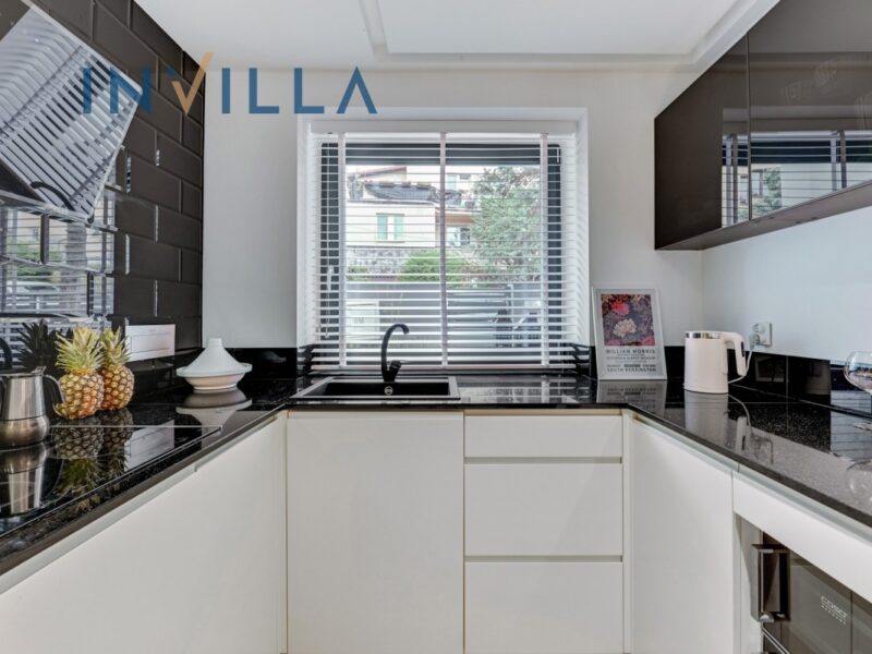Wszystkie strefy funkcjonalne są jasno wytyczone. W pełni wyposażona kuchnia, salon z kominkiem i wyjściem na balkon, dwie niezależne, klimatyzowane sypialnie z wyjściem na balkon i przestronny taras (26 m2), dwie łazienki z czego jedna jest wyposażona w wannę a druga w prysznic. Dodatkowo sypialnia z wyjściem do ogrodu. To wszystko powoduje, że dom jest idealnym miejscem do życia. W piwnicy miejsca do przechowywania oraz pralnia.