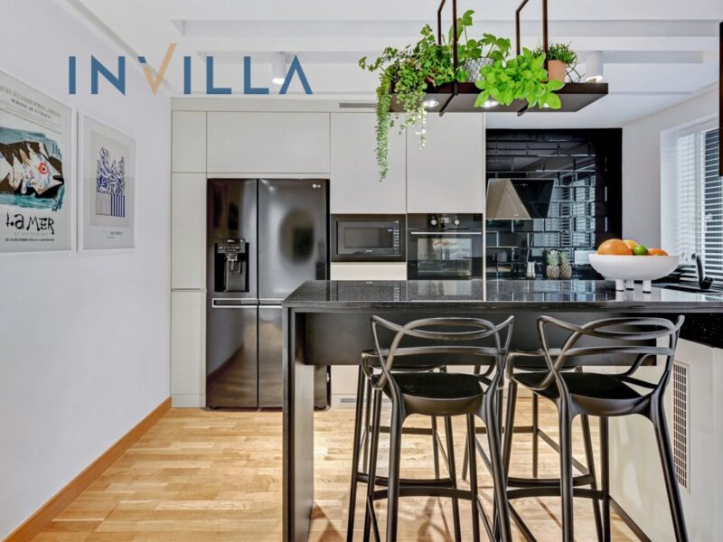 Dom wyposażono w system alarmowy i kamery, co dodatkowo zapewnia poczucie komfortu i bezpieczeństwa.
