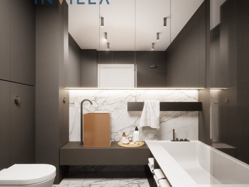 Na pierwszym i drugim poziomie do dyspozycji mamy po 2 pokoje oraz na każdej kondygnacji i łazienkę.