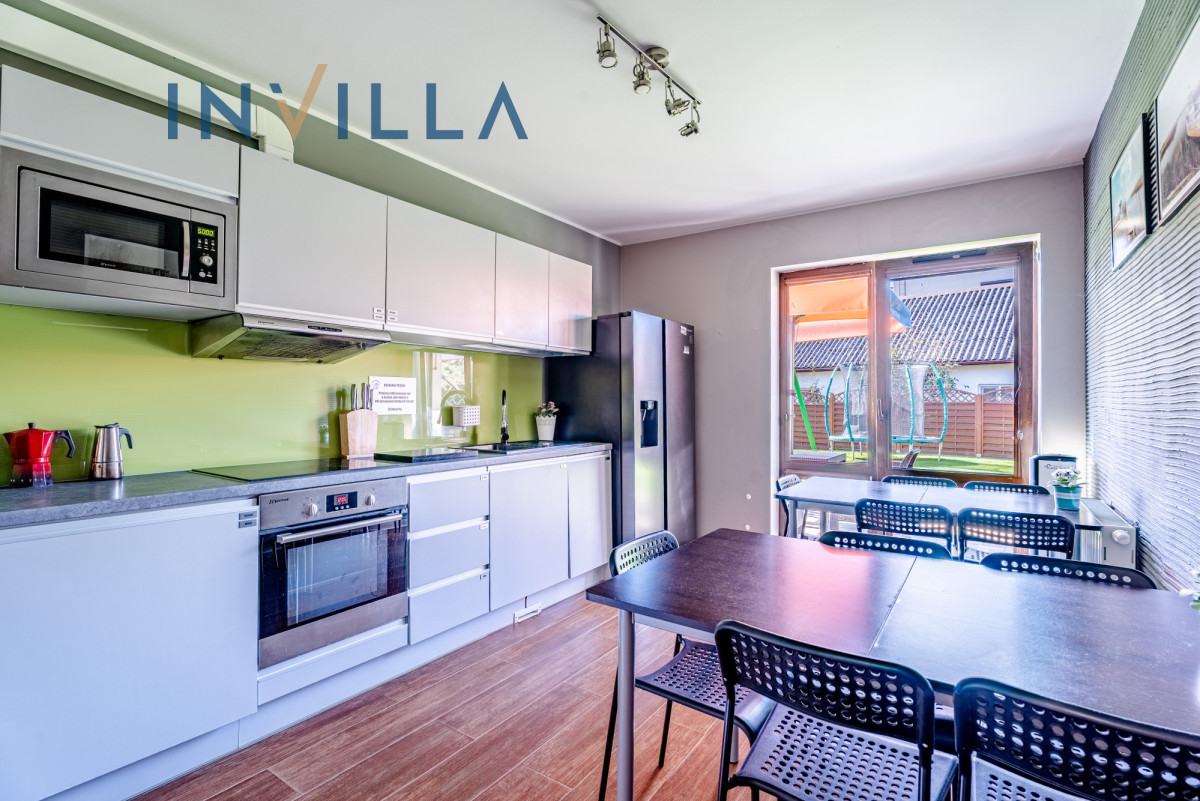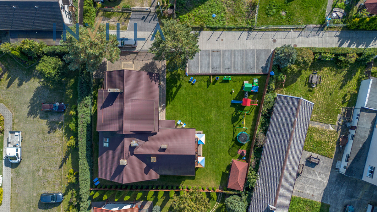 - Duży plac zabaw (trampolina, huśtawki, domek, badminton)