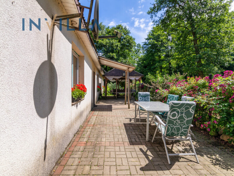 W bezpośrednim sąsiedztwie nieruchomości znajduje się stajnia, z której konie spędzają czas na pobliskich łąkach. Najbliższy sklep mieści się w odległości 1,5 km.