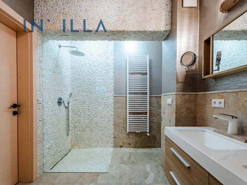 - nowoczesna, funkcjonalna łazienka z prysznicem.