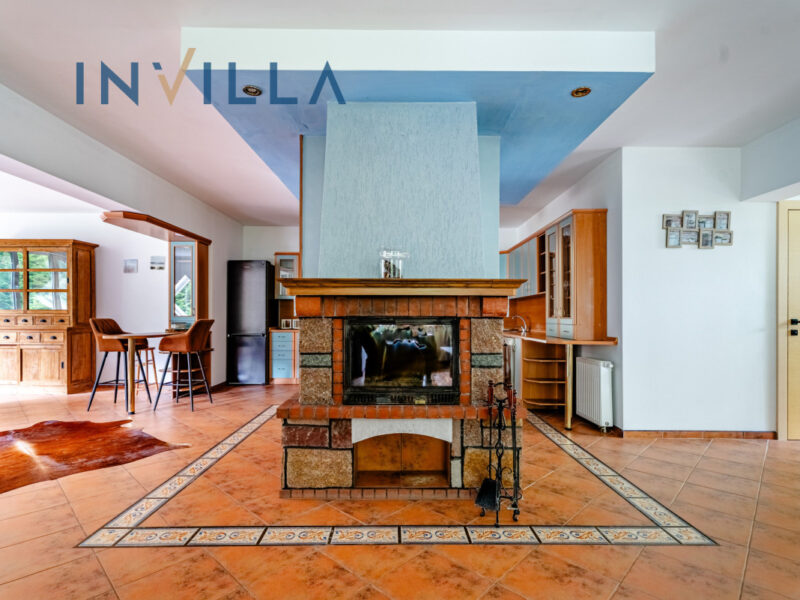 - przestronny salon z centralnie usytuowanym kominkiem,