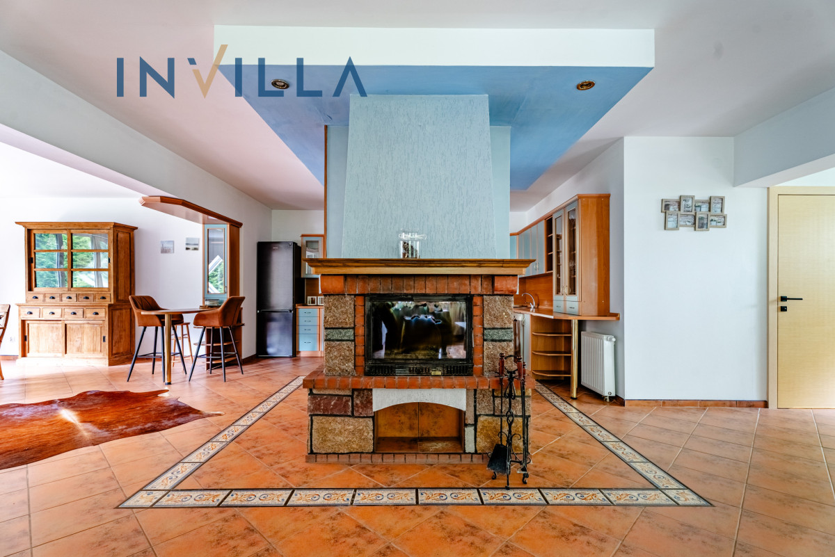• przestronny salon z centralnie usytuowanym kominkiem,