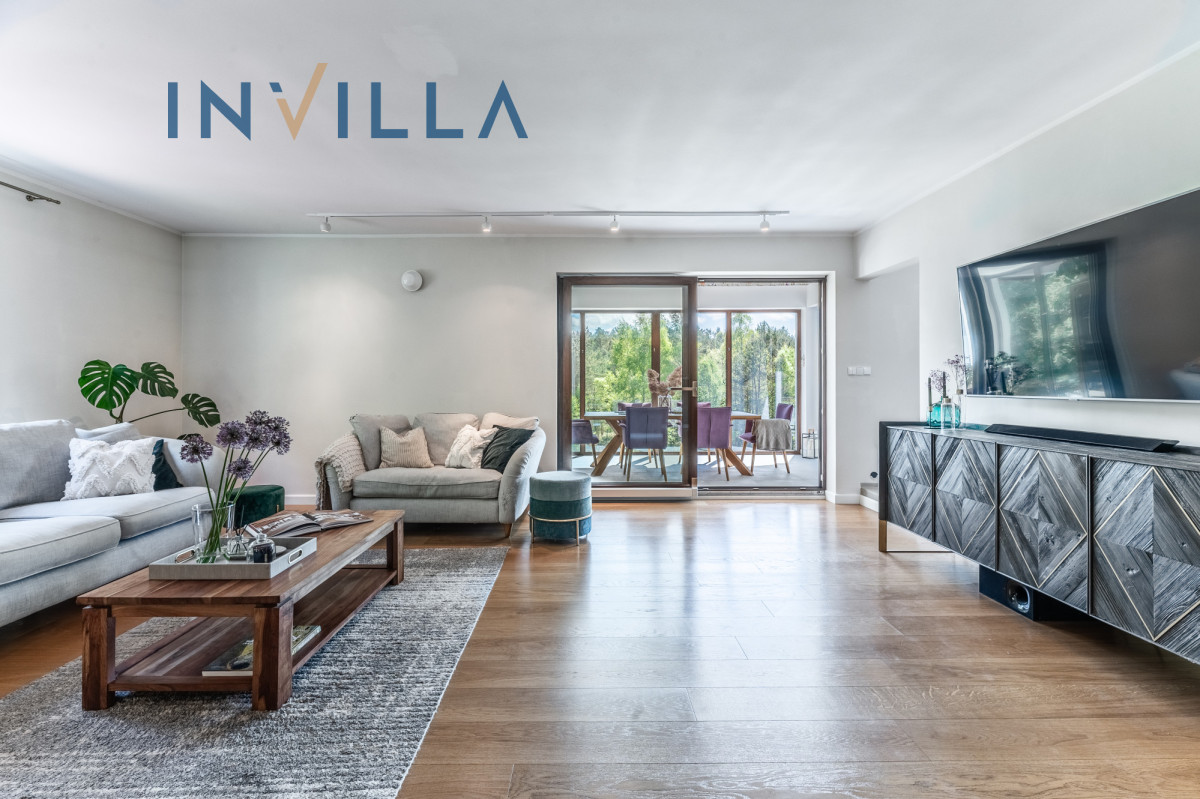 Z panoramicznych okien salonu rozciąga się widok na zieleń, która zmienia się wraz z porami roku, tworząc nieustannie nowe pejzaże. Tu naprawdę można odetchnąć.