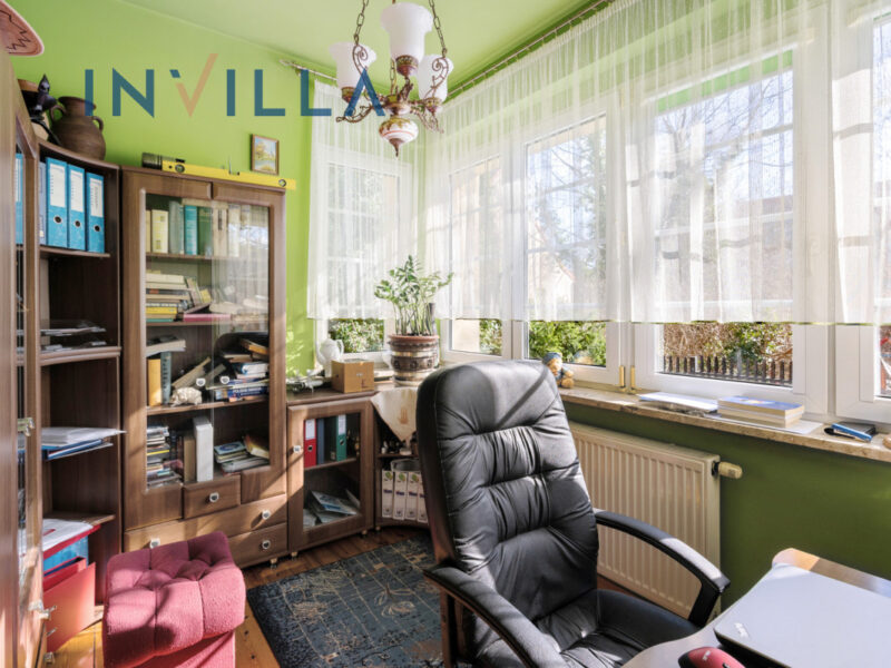 Parter: dwa przestronne pokoje, gabinet, kuchnia i łazienka.