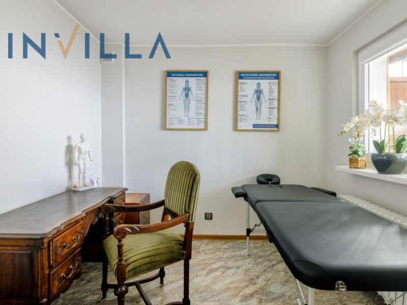 Nad garażem przylegającym do budynku urządzono gabinet terapeutyczny z osobnym wejściem składający się z dwóch pokoi z dodatkowym wejściem do łazienki. Gabinet można zaadaptować na osobne mieszkanie.