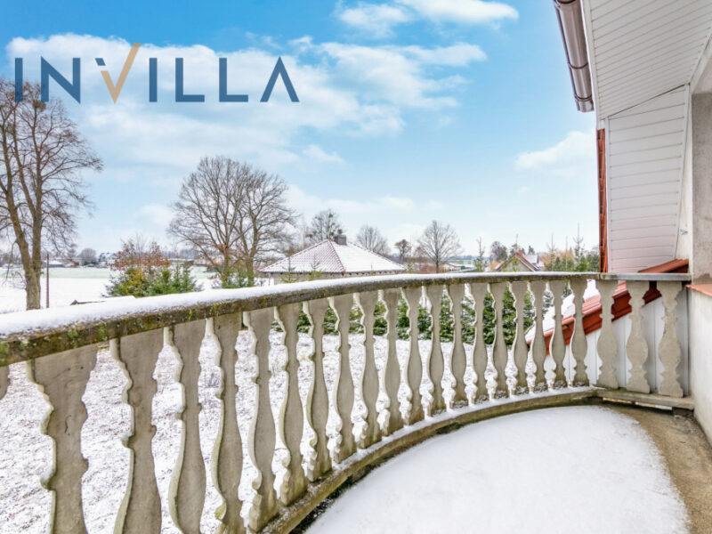 • 4 sypialnie (dwie z wyjściem na balkon, z którego roztacza się piękny widok na całą działkę),