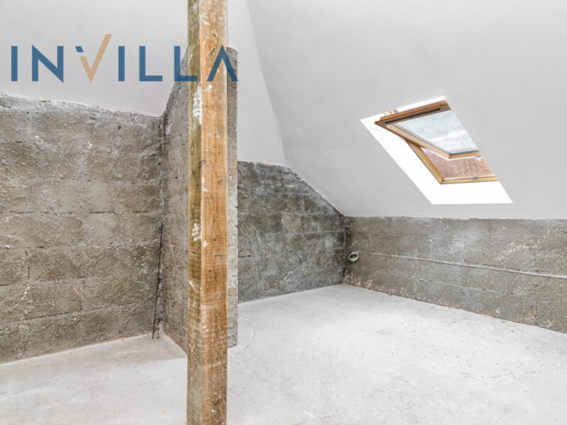 Domek gospodarczy na parterze posiada miejsce na kuchnię, łazienkę i pokój, a na piętrze otwartą przestrzeń z oknami na dodatkowy pokój. Po przekwalifikowaniu może stanowić dodatkowy dom mieszkalny.