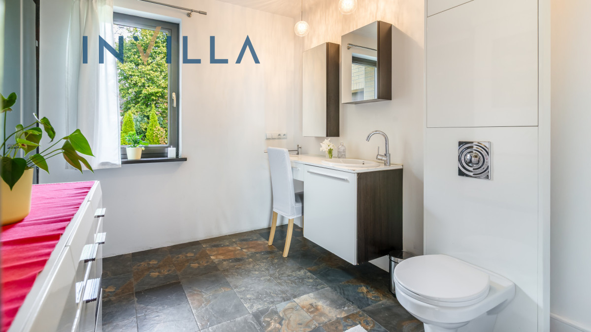 Część prywatna domu gwarantuje domownikom ciszę i komfort. Sypialnie są ustawne i dobrze doświetlone, co sprzyja odpoczynkowi. Dodatkowe pomieszczenia mogą pełnić funkcję gabinetu do pracy zdalnej, pokoju gościnnego lub przestrzeni hobby. To dom, który elastycznie dopasowuje się do zmieniających się potrzeb rodziny.