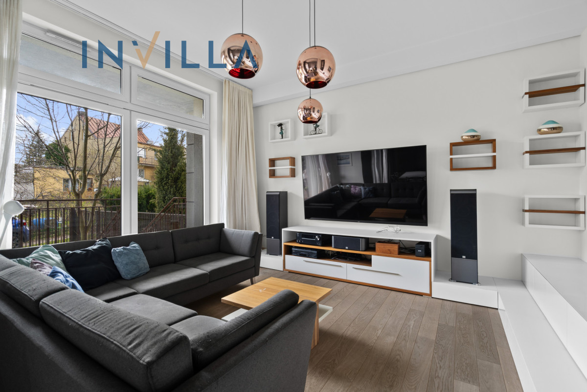 Dodatkowym atutem jest przyziemie na poziomie garażu, które posiada niezależne wejście od strony ogrodu. Znajduje się tam kilka wyremontowanych pomieszczeń z pełnowymiarowymi oknami – idealnych na biuro, pracownię, gabinet lub przestrzeń rekreacyjną dla dzieci.