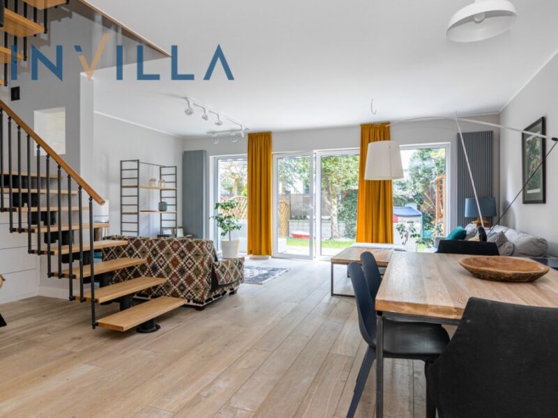 Na wynajem komfortowy, stylowy i nowocześnie urządzony dom w zabudowie bliźniaczej o powierzchni 160 m2, położony w kameralnej dzielnicy Gdyni – na Małym Kacku.