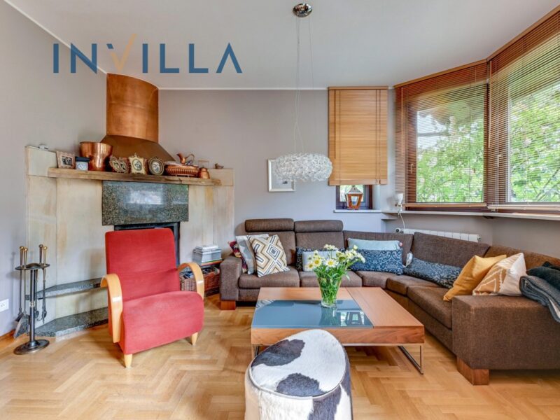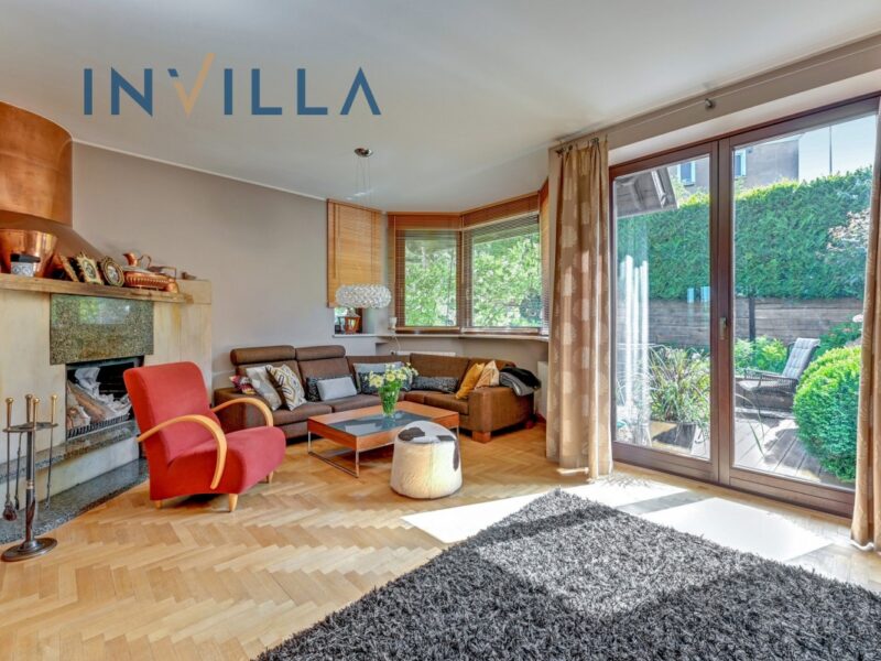 • salon z kominkiem i wyjściem na taras z ogrodem (ogród – ok. 200 m2),