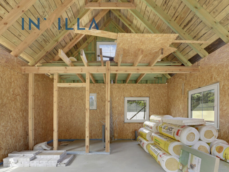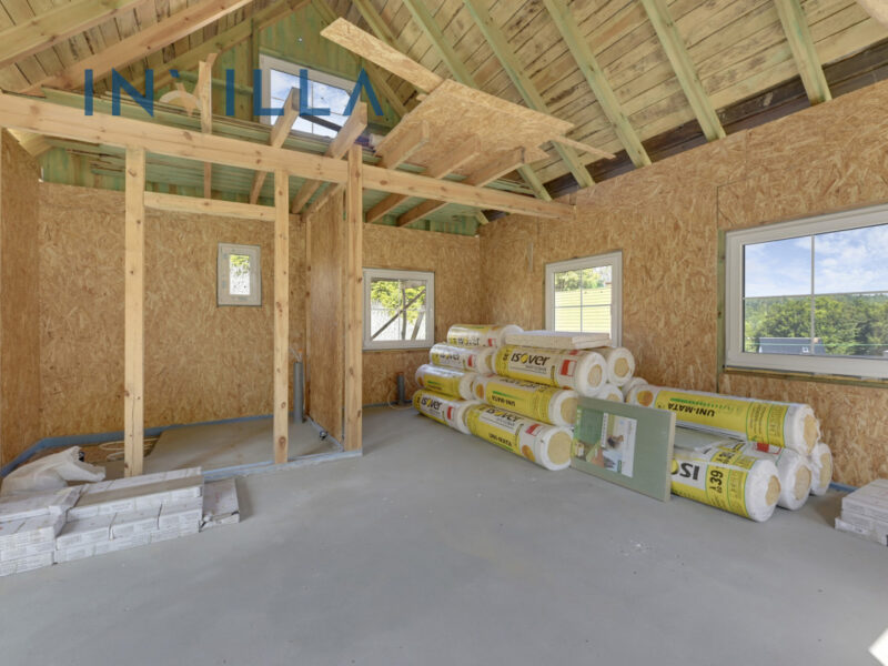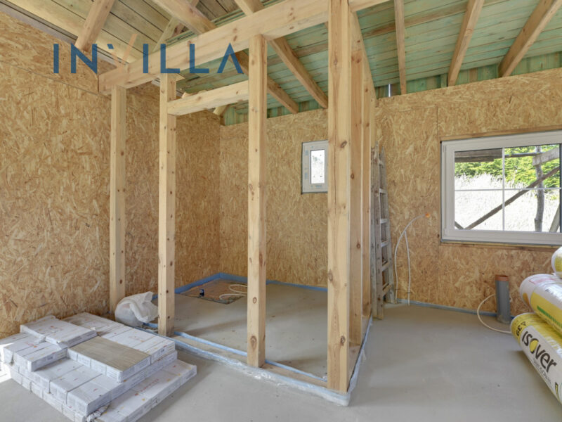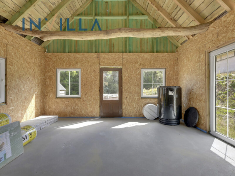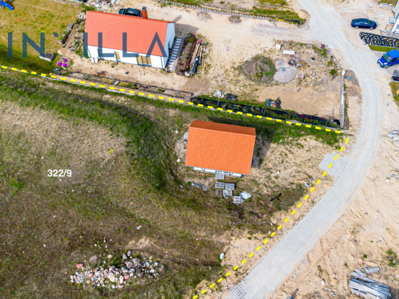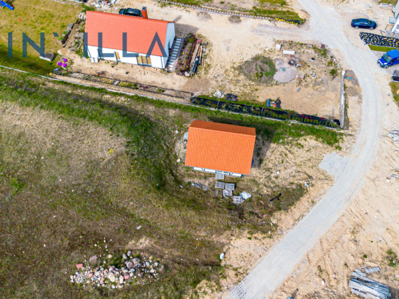 Dom wielkości 50 m2 jest w stanie surowym zamkniętym – dach, okna, jest wykończony z zewnątrz, doprowadzone są rury do ogrzewania podłogowego. Większość materiałów do wykończenia jest dostępna. Prąd i woda bezpośrednio przy linii działki, szambo. Obowiązuje MPZP.