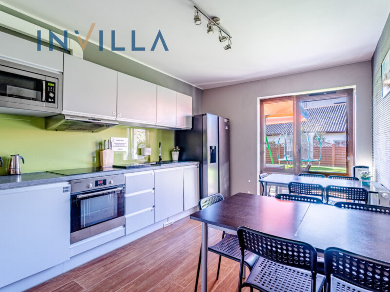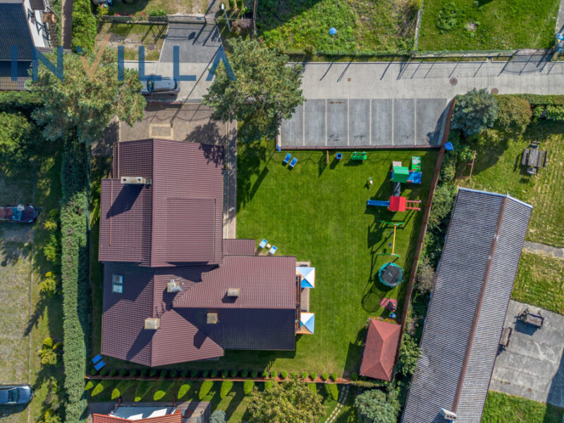 - Duży plac zabaw (trampolina, huśtawki, domek, badminton)