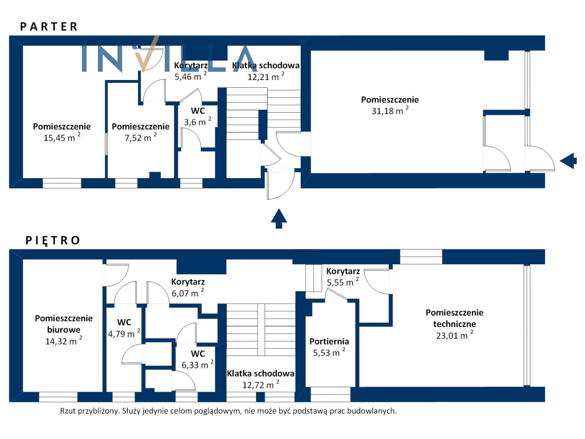 Budynek dwupiętrowy z własnym parkingiem. Na parterze znajduje sie duża sala sprzedażowa z przedsionkiem.Po przecinej stronie jest pomieszenie biurowe z własmy aneksem kuchennym, toaletą oraz pomieszczeniem biurowym. Na pierwszej kondygnacji jest pomieszczenie biurowe z własnym aneksem kuchennym i toaletą. Po przeciwnej stronie znajduję się sala(możliwość własnej adaptacji). Na drugiej kondygnacji znajduje się pomieszczenie biurowe z aneksem kuchennym i toaletą. Po przeciwnej stronie sala (możliwość własnej adaptacji).