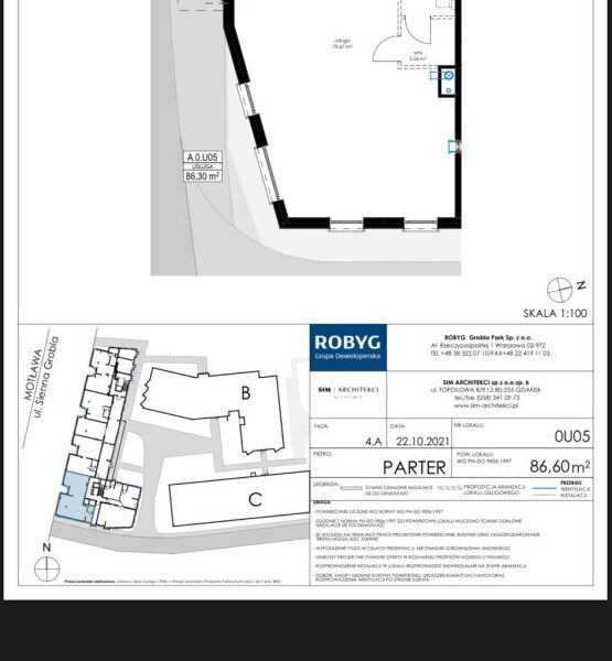 Lokal mieści się na parterze, a jego powierzchnia to 86,60 m2. Jest idealnie doświetlony, posiada wysokie witryny od strony ulicy (3,70 m wysokości).