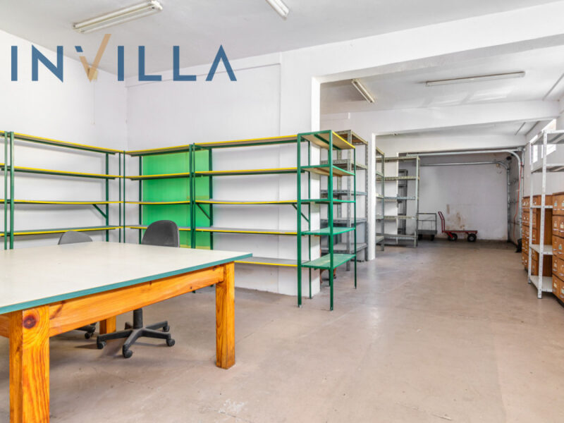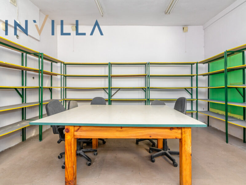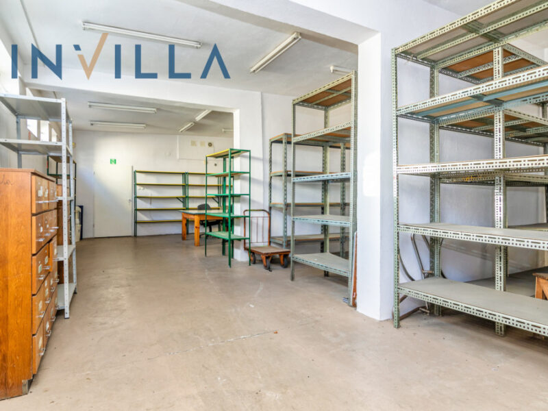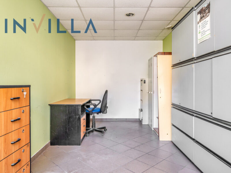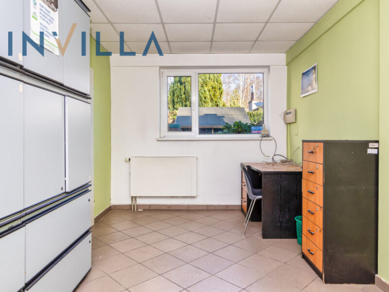 W pomieszczeniu znajdują się regały i niezbędne meble biurowe. Lokal idealnie nadaje się na magazyn, mała hurtownię lub warsztat samochodowy.