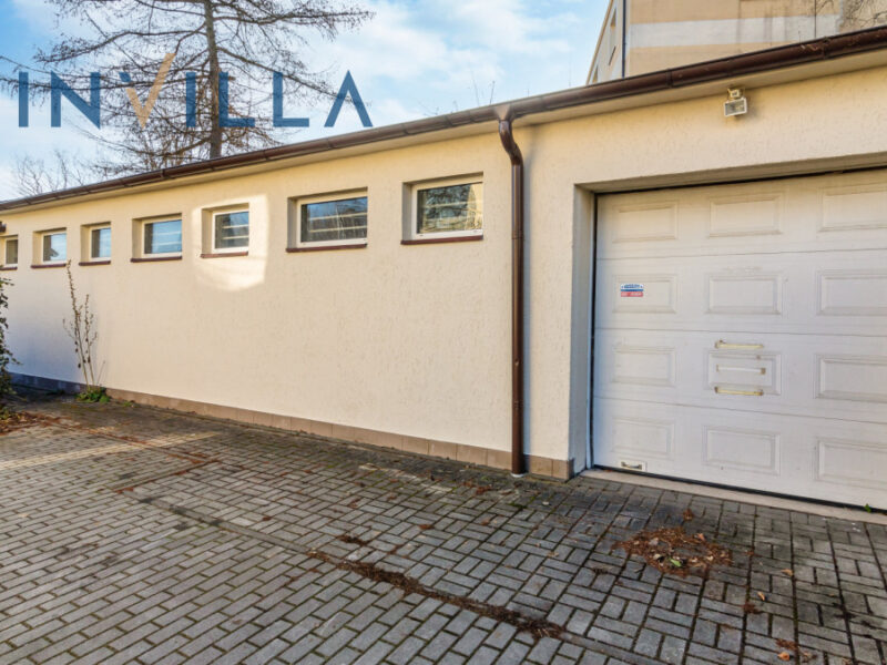 W pomieszczeniu znajdują się regały i niezbędne meble biurowe. Lokal idealnie nadaje się na magazyn, mała hurtownię lub warsztat samochodowy.