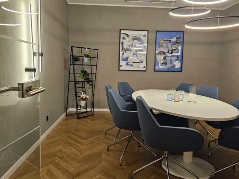 - 12 pomieszczeń biurowych, w tym 3 sale konferencyjne,
