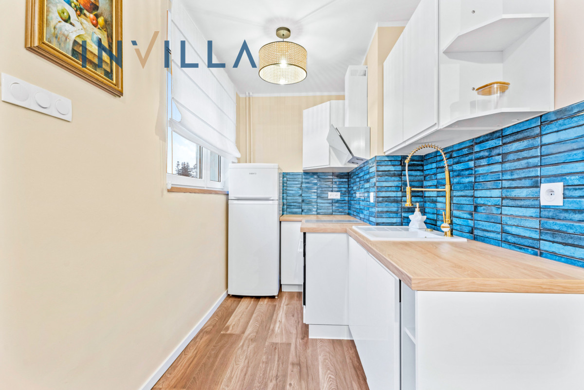 Mieszkanie o powierzchni 39,9 m² jest bardzo funkcjonalnie i gotowe do zamieszkania od zaraz. Składa się z salonu z wydzieloną kuchnią, sypialni, łazienki i przedpokoju. Okna wychodzą na stronę wschodnią. Mieszkanie jest w bardzo dobrym stanie technicznym i sprzedawane z pełnym wyposażeniem, w tym m.in. rozkładaną kanapą, szafami, stołem z krzesłami, szafką RTV, sprzętem AGD oraz pralką. Do lokalu przynależy również piwnica.