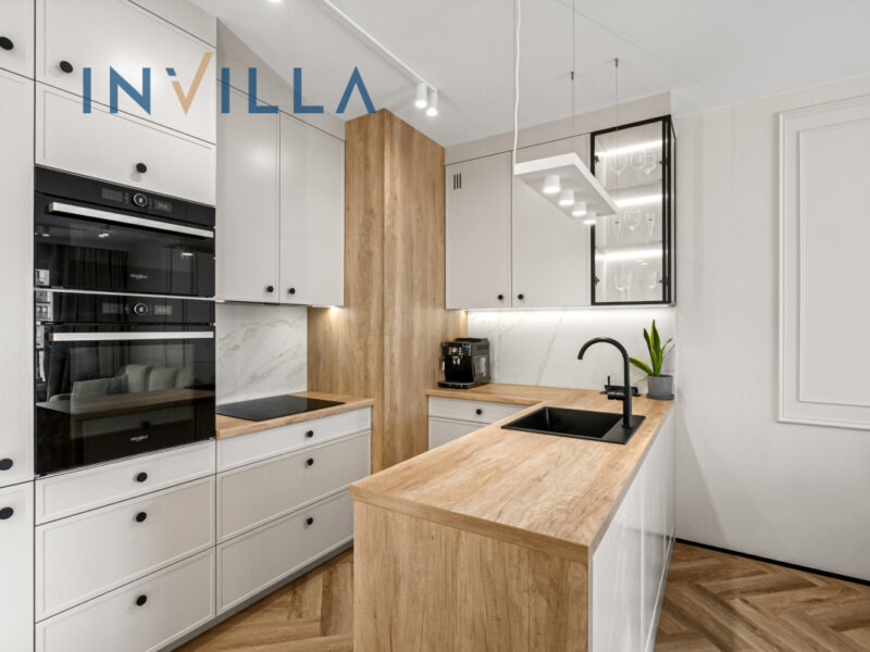 Apartament został zaprojektowany przez architekta z dbałością o wysoki standard wykończenia i funkcjonalność rozwiązań: