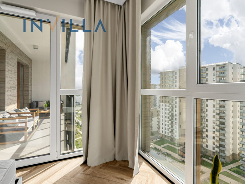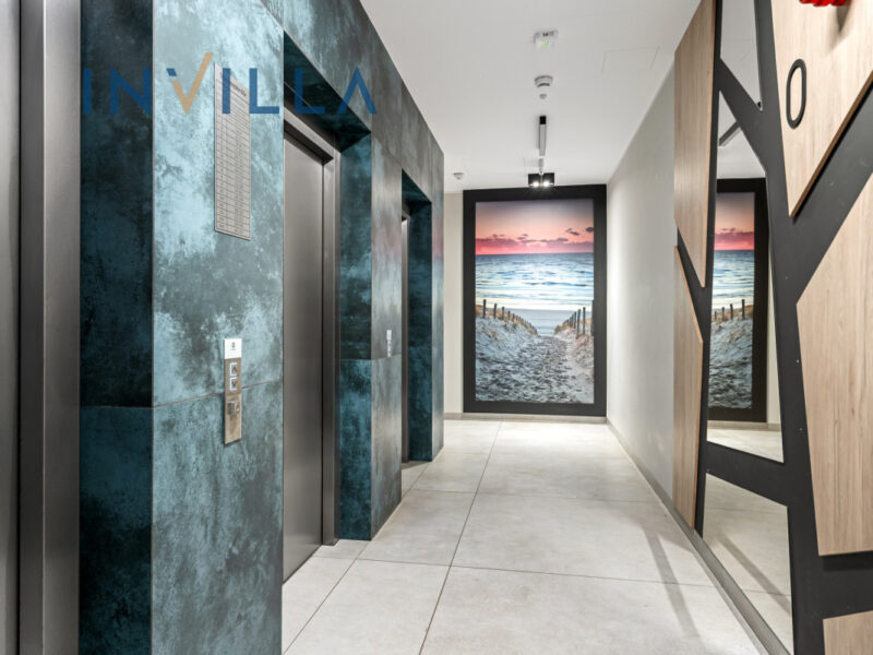 Mieszkanie znajduje się na 14 piętrze 17-piętrowego budynku z 2023 roku z całodobową recepcją i ochroną, wyposażonego w kilka cichobieżnych wind oraz elegancko wykończonymi częściami wspólnymi. Dla mieszkańców przeznaczone są dodatkowe udogodnienia – przestronne lobby, siłownia, sauna, przestrzeń co-workingowa i plac zabaw dla dzieci.