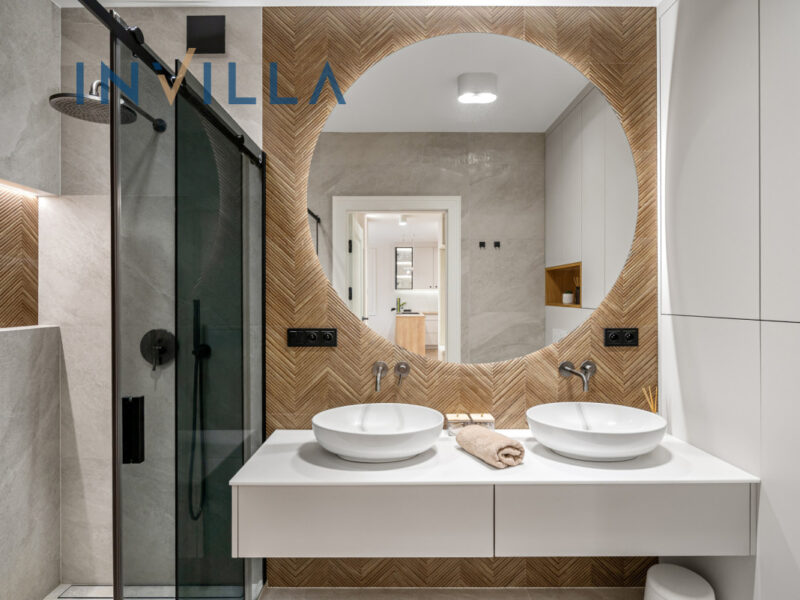- wysokiej klasy wodoodporne panele winylowe i kafle w łazience,