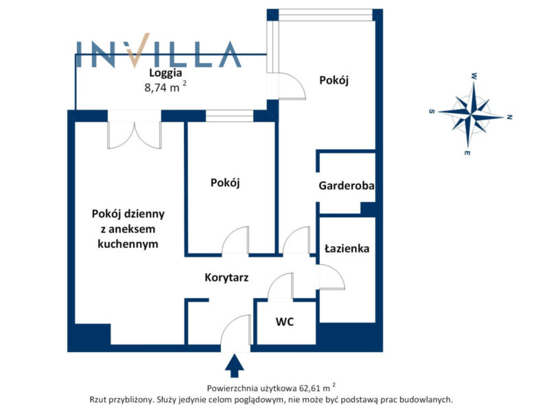 Powierzchnia mieszkania wynosi 62,61 m2, została funkcjonalnie zaprojektowana i składa się z następujących pomieszczeń: