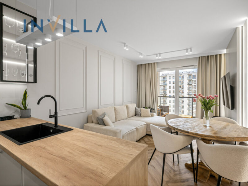 Apartament został zaprojektowany przez architekta z dbałością o wysoki standard wykończenia i funkcjonalność rozwiązań: