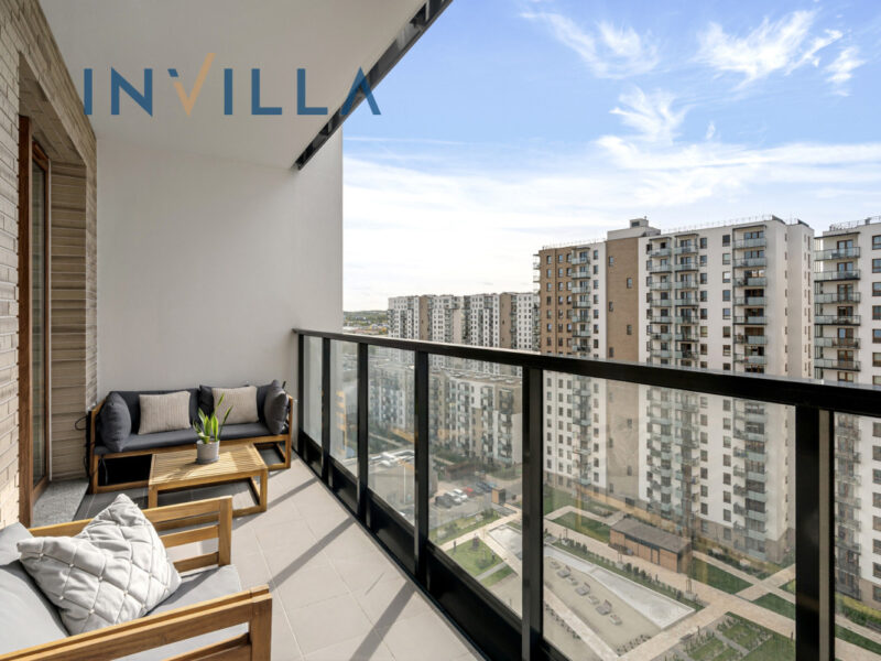 Mieszkanie znajduje się na 14 piętrze 17-piętrowego budynku z 2023 roku z całodobową recepcją i ochroną, wyposażonego w kilka cichobieżnych wind oraz elegancko wykończonymi częściami wspólnymi. Dla mieszkańców przeznaczone są dodatkowe udogodnienia – przestronne lobby, siłownia, sauna, przestrzeń co-workingowa i plac zabaw dla dzieci.