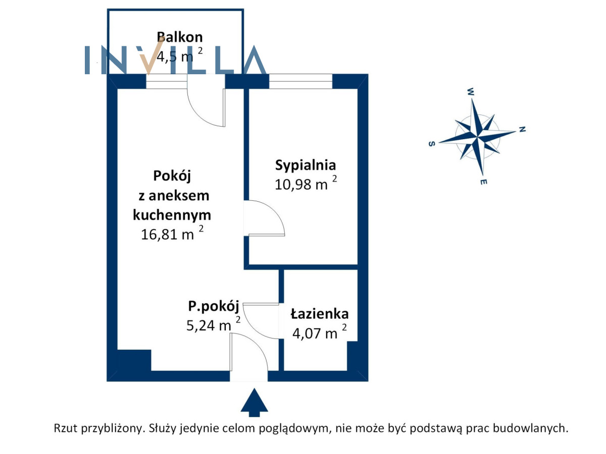 pokój dzienny z aneksem kuchennym i wyjściem na balkon, sypialnia, przedpokój, łazienka z WC.