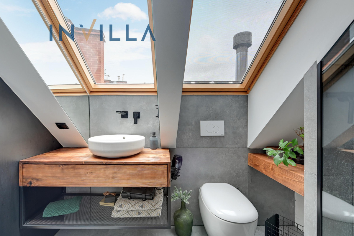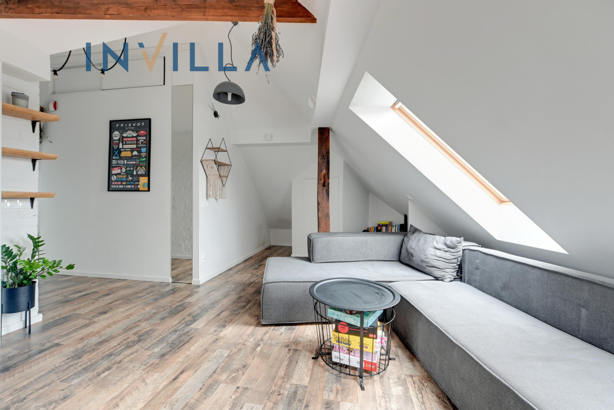 Drewniane belki to wyeksponowane elementy, pełniące funkcję zarówno konstrukcyjną, jak i ozdobną, utrzymującą charakter kamienicy. Całość nie wymaga nakładów finansowych, mieszkanie jest gotowe do zamieszkania. Zaletą jest również niski czynsz – niecałe 400 zł / mies.
